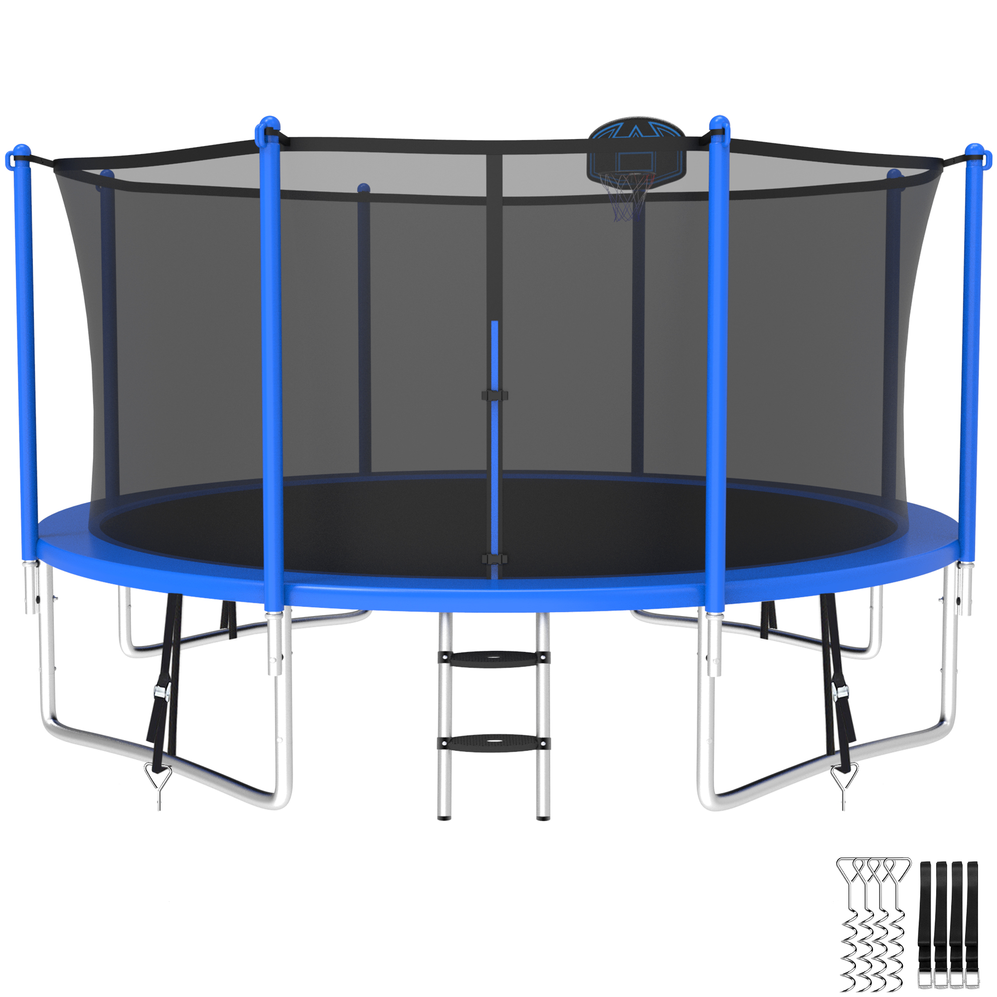 Elitezip Trampolines 14FT 15FT 16FT, Trampolines for 4-6 Kids/1-2 Adults, 1400LBS Outdoor Trampolines with Enclosure Net, Basketball Hoop, Ladder, Heavy Duty Recreational Trampoline, Fast Assembly