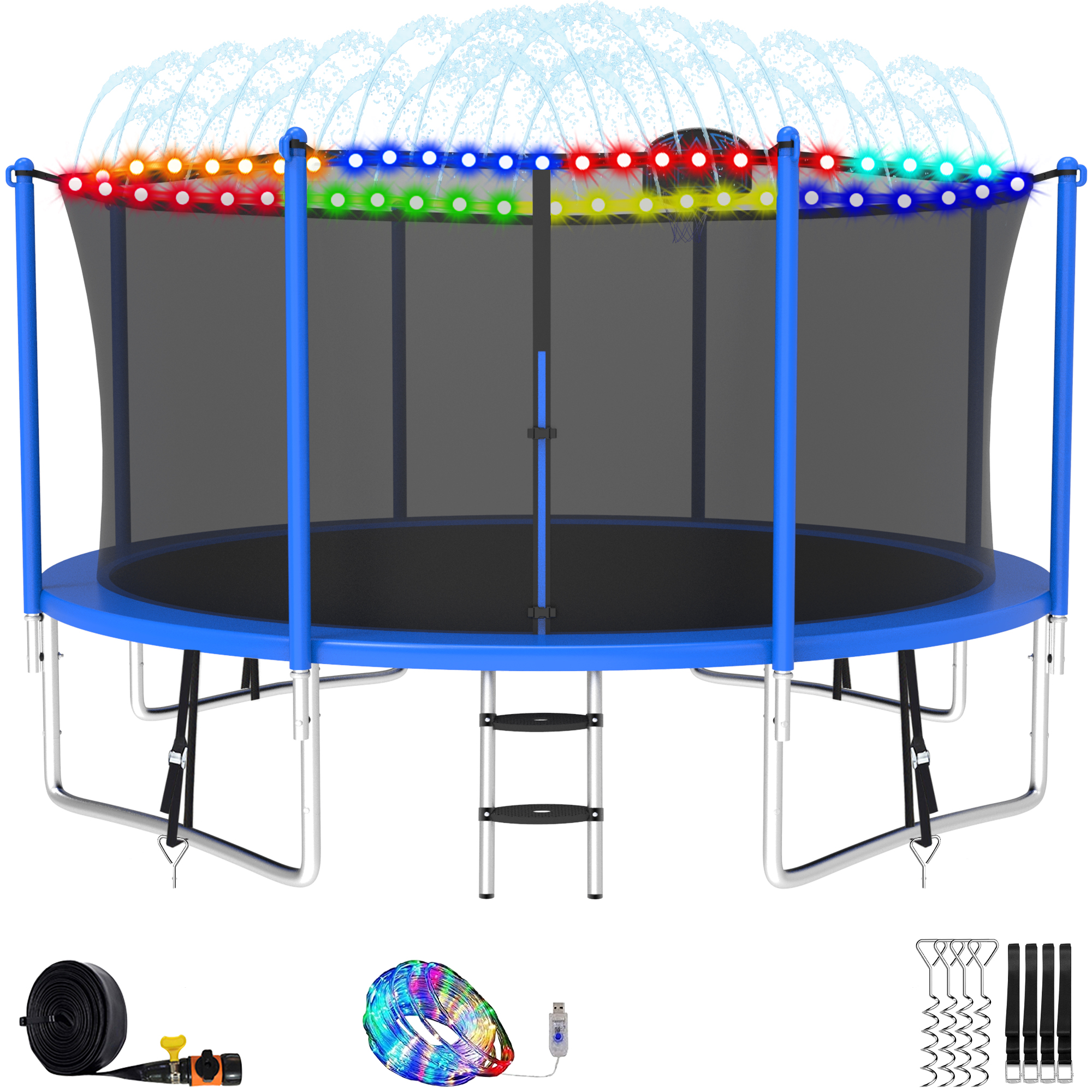 Elitezip Trampoline, 8FT 10FT 12FT 14FT 15FT 16FT Trampoline with Enclosure Net No Gap Design for Kids Adults Heavy Duty Outdoor Trampolines with Basketball Hoop, Light, Sprinkler, wind stakes