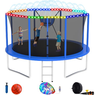 Elitezip Trampolines 14FT, Trampolines for 4-6 Kids/1-2 Adults, 1400LBS Outdoor Trampolines with Enclosure Net, Basketball Hoop, Lights, Sprinkler, Heavy Duty Recreational Trampoline Backyard, Black