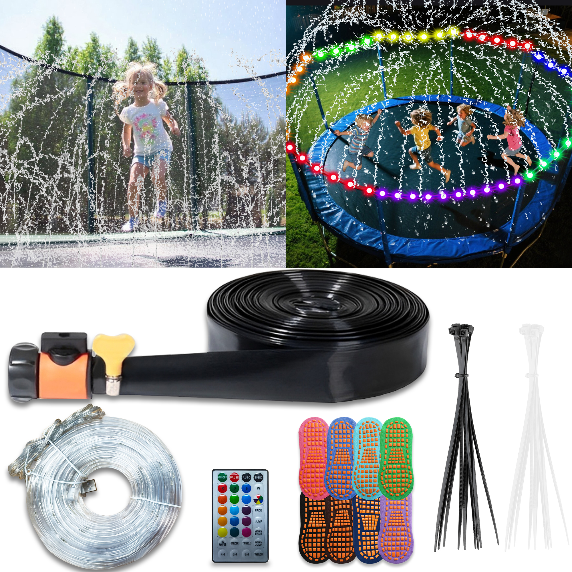 Elitezip 3pcs Trampoline Accessories Kits, Trampoline Lights, Trampoline Sprinkler, and 8 Pairs of Trampoline Socks, for 16FT 15FT 14FT 12FT 10FT Outdoor Trampoline for Kids, Family Backyard Play